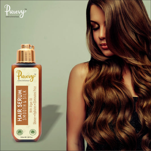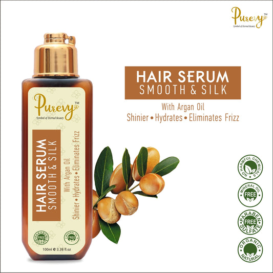 Purevy Hair Serum Smooth & Silk - With Argan Oil - Shinier - Hydrates - Eliminates Frizz 100ml