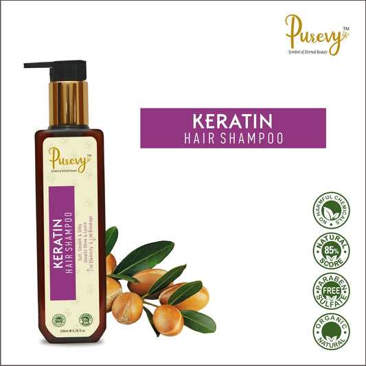 Purevy Keratin Hair Shampoo - Soft, Smooth & Silky - Unveils Shine & Lustre - Se Elasticity & Se Breakage. 200ml