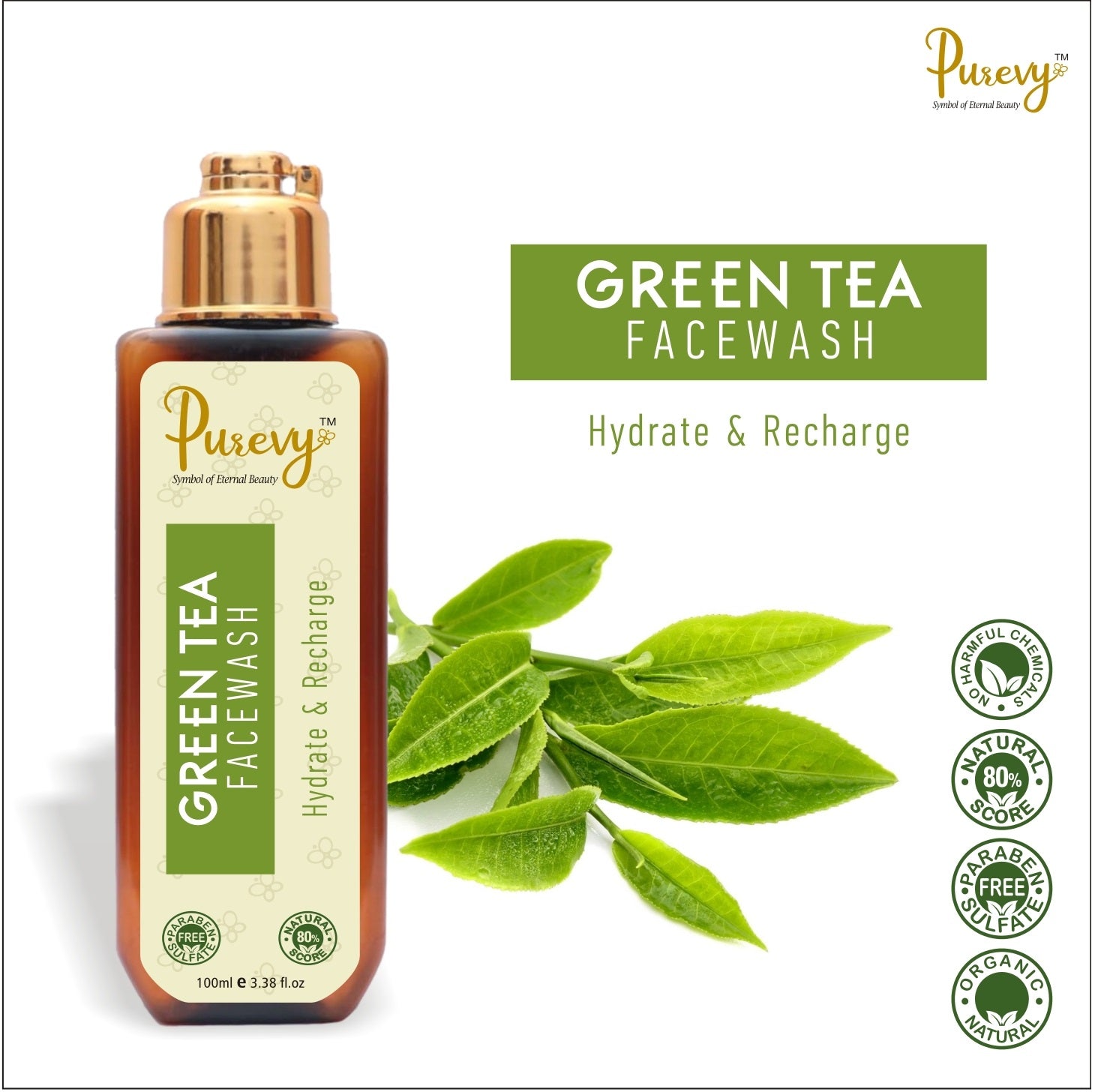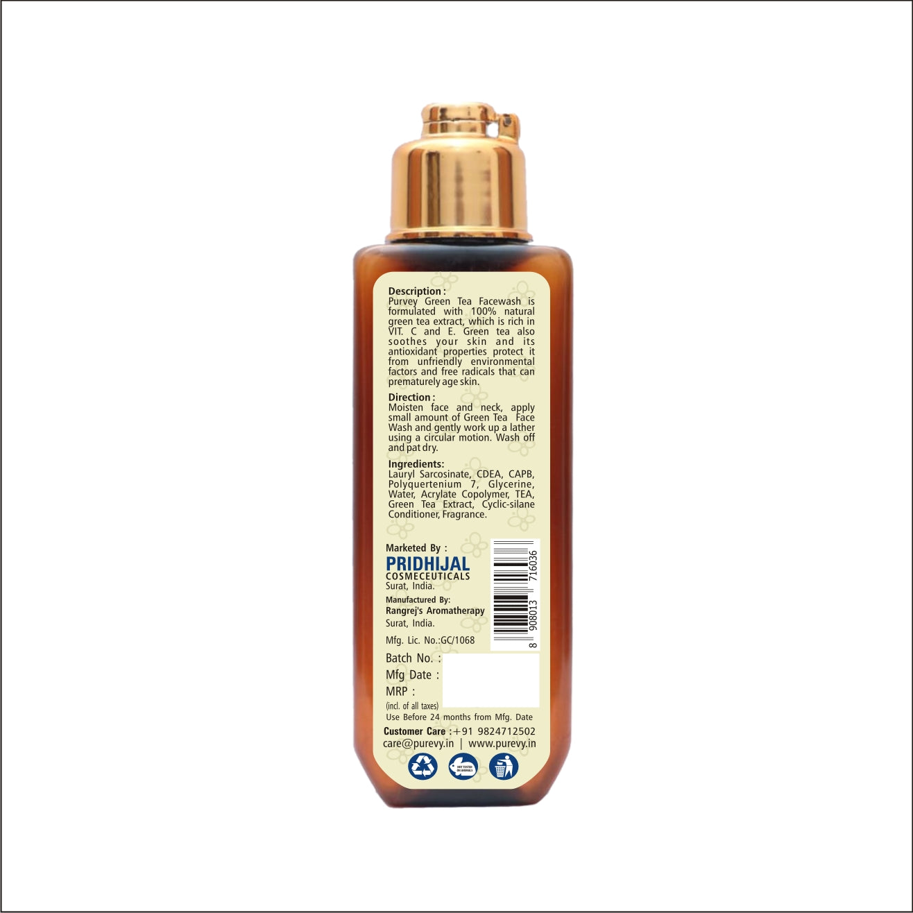 Purvey Green Tea Facewash is Formulated with 100% Natural green tea extract, which is Rich in VIT. C And E. Green Tea also soothes your skin and its antioxidant properties Protect it from unfriendly environmental factors and free radicals that can prematurely age skin.