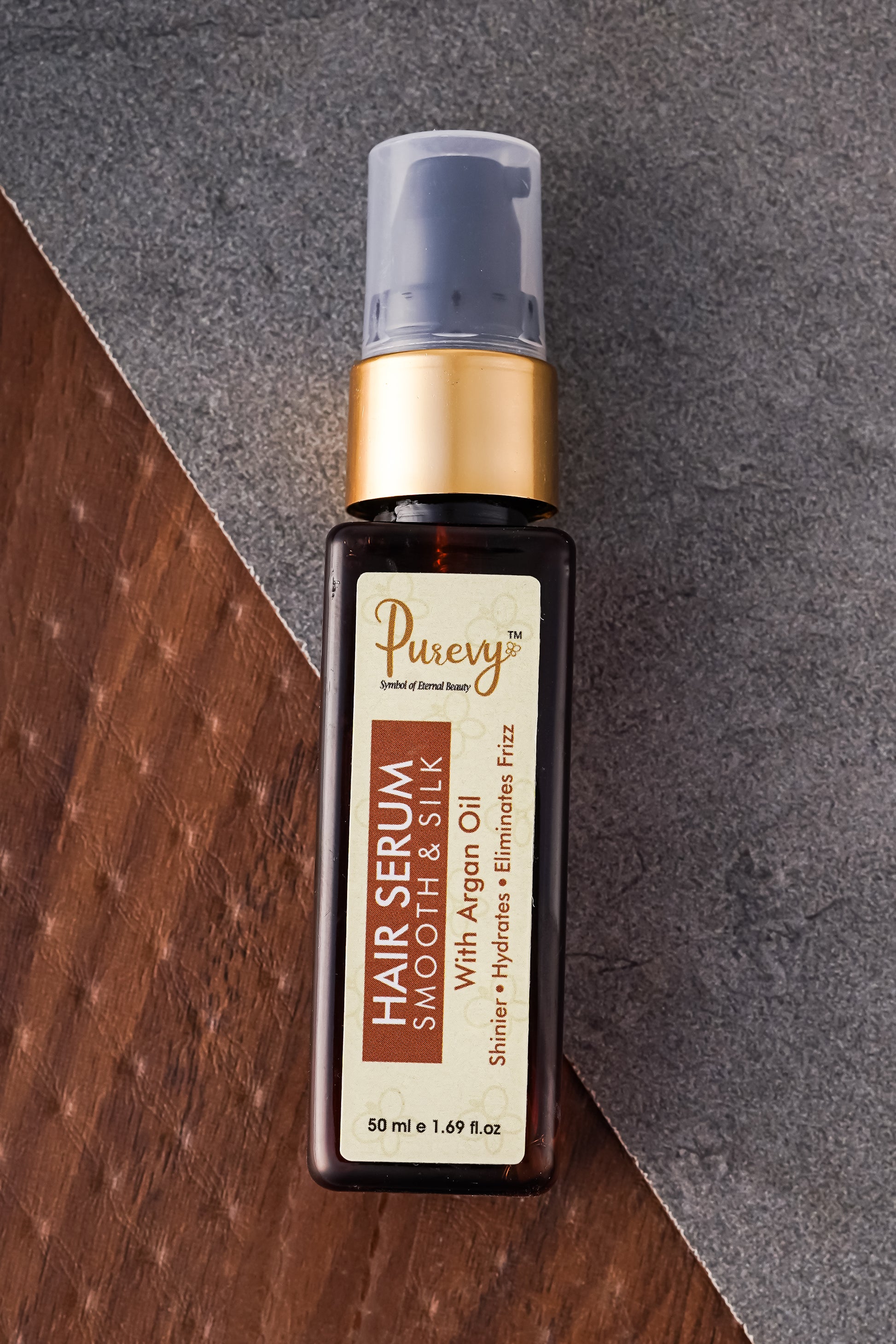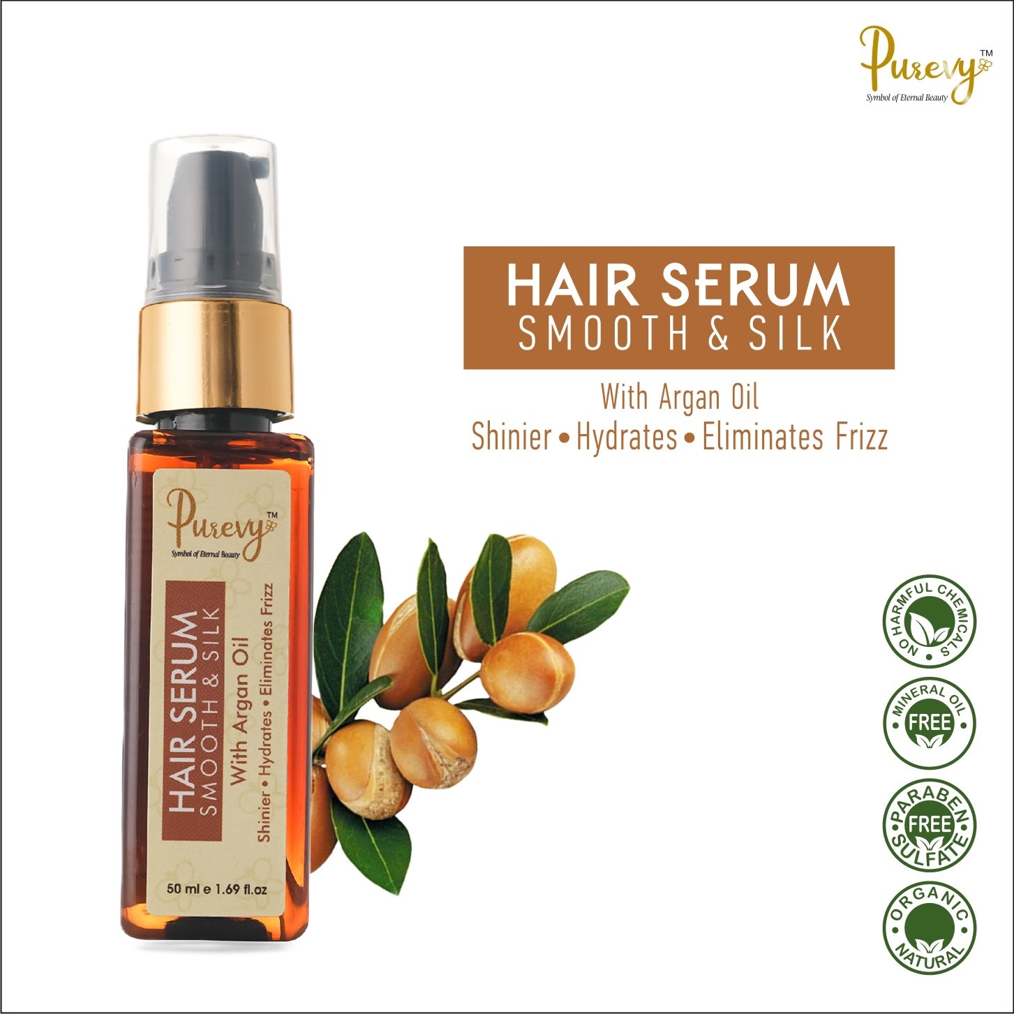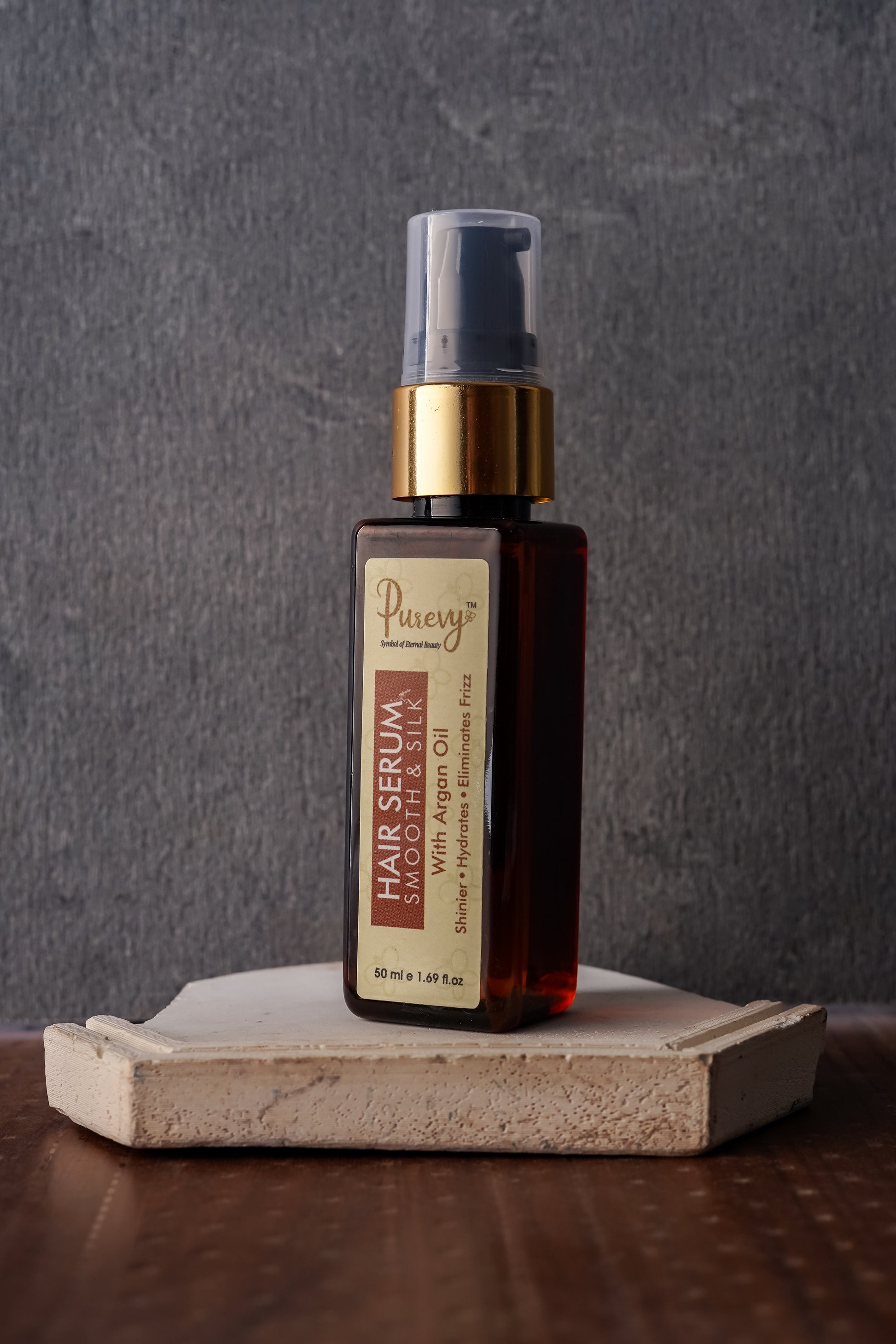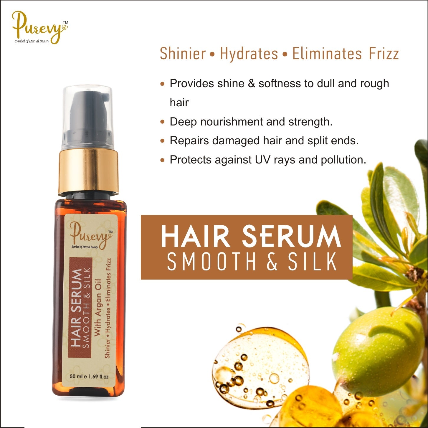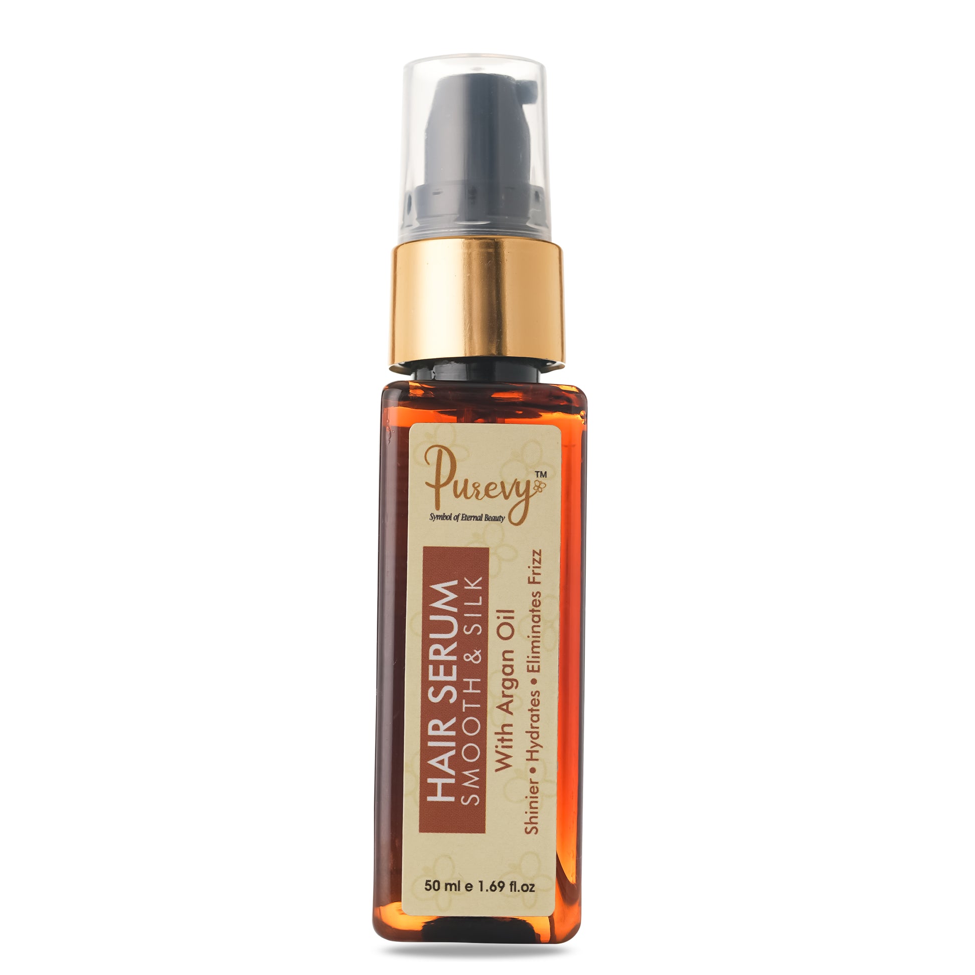 Purevy Hair Serum Smooth & Silk - With Argan Oil - Shinier - Hydrates - Eliminates Frizz 50ml